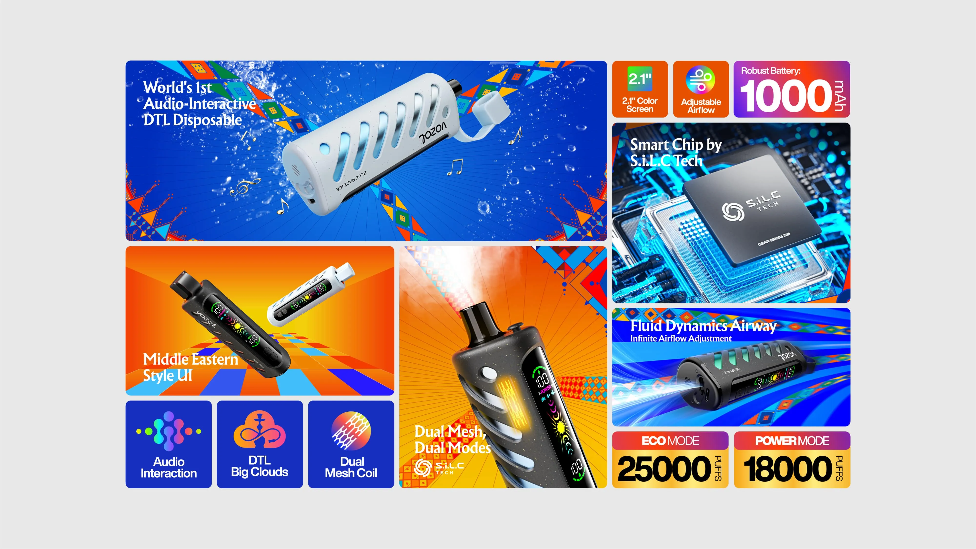 ویژگی خاص ویپ یکبار مصرف ۲۵ هزار پاف وزول، سفارشیسازی بینظیر پخش صدا که هنگام ویپینگ میتوانید لذت ببرید و سرگرم شوید. دو صدای مختلف برای این ویپ درنظر گرفته شده که یکی از آنها صدای حباب ارامش بخش قلیان و دیگری صدای غرش یک موتور قدرتمند هنگام گاز دادن است